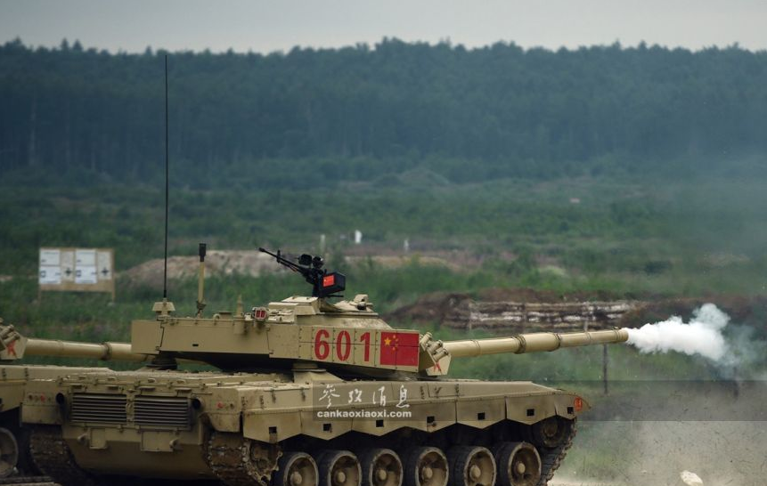 俄軍相關人士指出,中國隊是此次比賽中的“奪冠熱門”。”側面拍攝的602號96B坦克。96B配備有一門125毫米滑膛炮,具備發射炮射反坦克導彈能力。