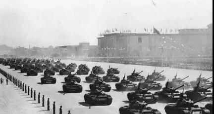在國慶10周年的盛大閱兵式上,32輛59式坦克行進在地面武器裝備的最前列,威武雄壯地駛過天安門,接受黨和國家領導人的檢閱。這是中國人自主研制的坦克首次向世人展示。