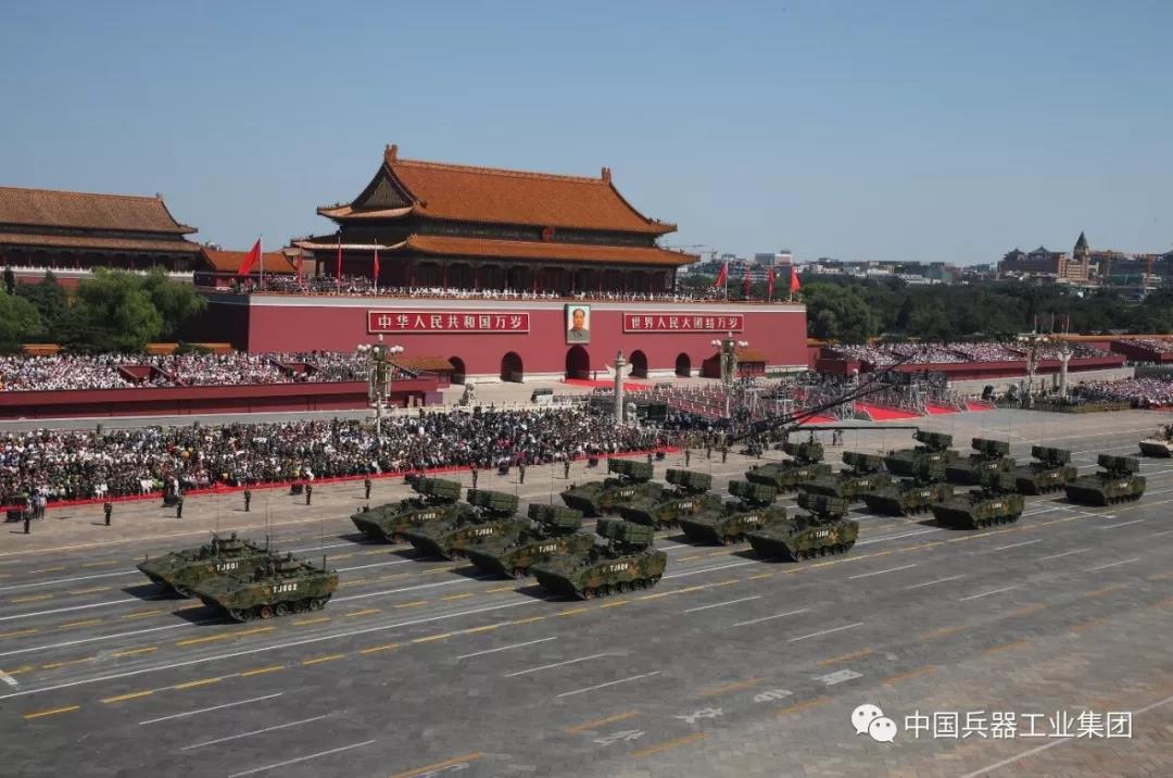 2015年9月3日,紀念抗戰勝利70周年閱兵在天安門廣場舉行,接受檢閱的27個裝備方隊中,兵器工業集團研制生產的裝備占到13型,99A主戰坦克、紅箭10導彈發射車、11式輪式裝甲突擊車和35毫米自行高炮系統等裝備首次亮相。