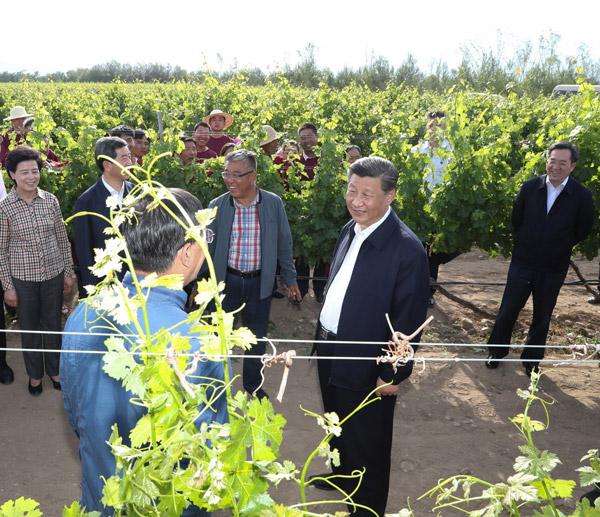 習(xí)近平總書(shū)記9日在銀川考察調(diào)研。他先后來(lái)到賀蘭縣稻漁空間鄉(xiāng)村生態(tài)觀光園、賀蘭山東麓葡萄種植園,了解當(dāng)?shù)匕l(fā)展特色農(nóng)業(yè)產(chǎn)業(yè)、加強(qiáng)賀蘭山生態(tài)保護(hù)等情況。