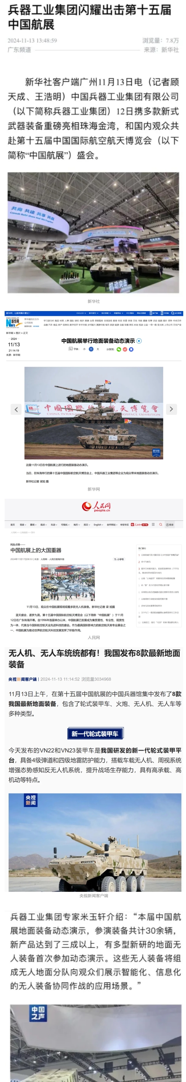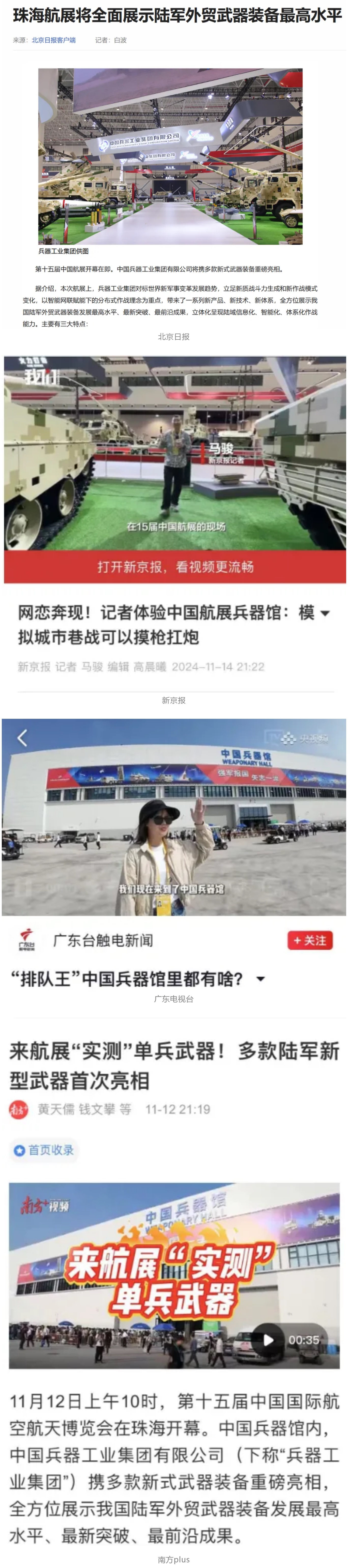 備受矚目!各大媒體廣泛報道兵器工業集團參展第十五屆中國航展
