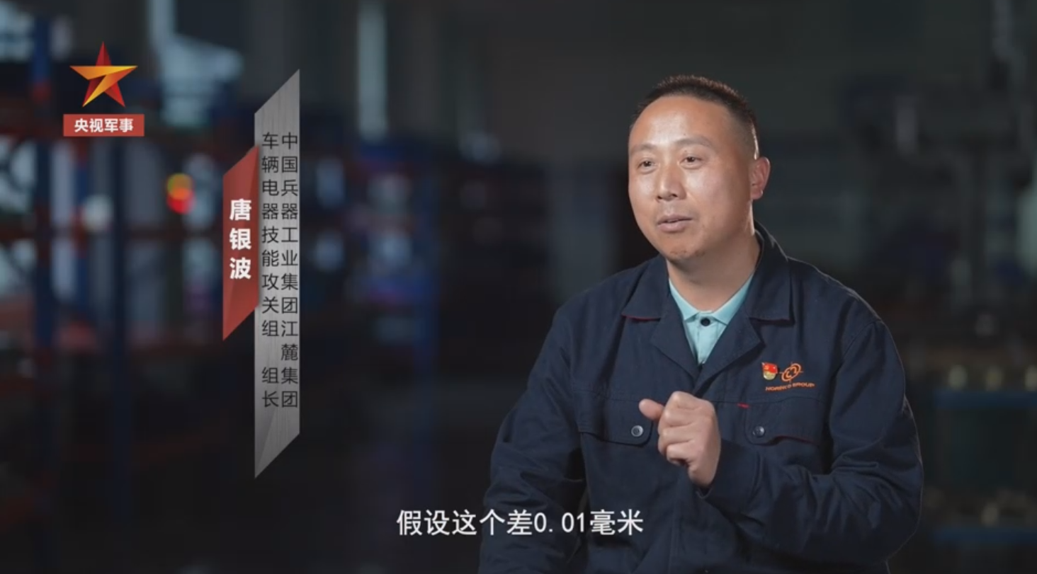 4月30日,央視CCTV-7國防軍事頻道《正午國防軍事》《能工巧匠》欄目播出:《唐銀波:擦亮戰車之“眼”》。“零件差0.01毫米,到炮口的距離就差了將近400倍”。面對極其嚴苛的精度要求,先進的機器敗下陣來。中國兵器工業集團江麓集團車輛電器技能攻關組組長高級銑工唐銀波決定打破常規、帶頭攻關,用雙手擦亮“坦克之眼”。在唐銀波看來,能夠把產品質量提升也相當于打贏了一場戰爭,“車間是第二戰場,能工巧匠越多越好,生產出更精密的武器裝備,助力國防事業。”