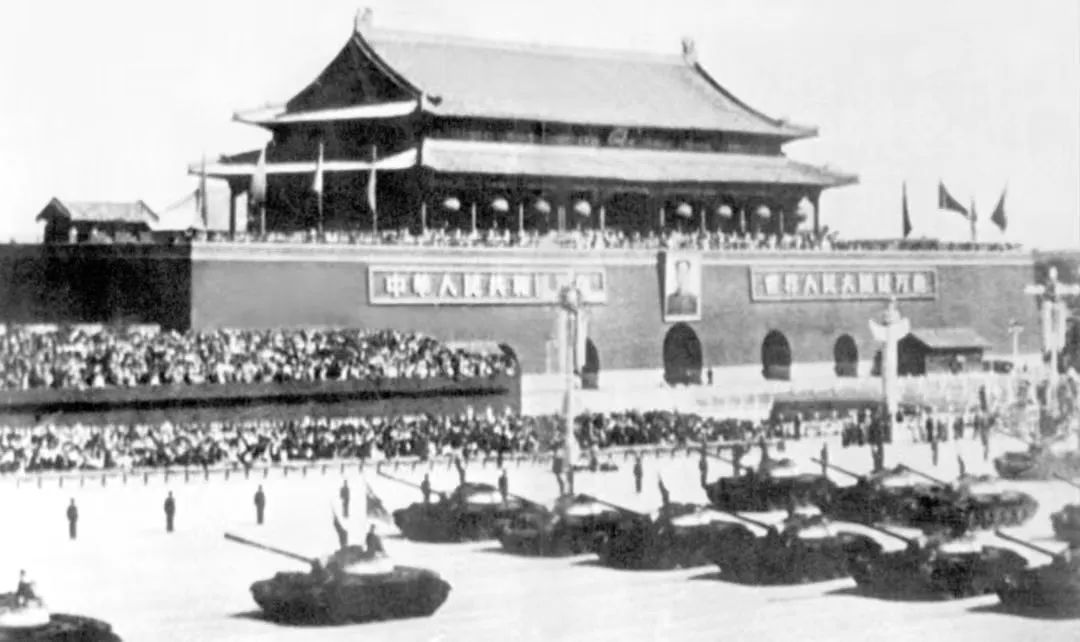 1959年10月1日,慶祝中華人民共和國成立十周年閱兵式現場,32輛59式主戰坦克雄赳赳氣昂昂駛過天安門廣場,向全世界宣告,中國結束了不能生產坦克的歷史。