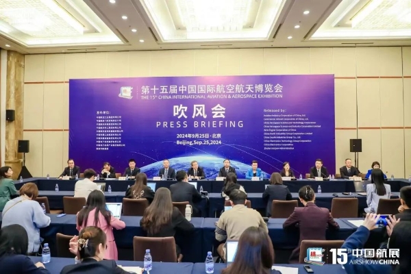 9月25日,第十五屆中國國際航空航天博覽會(以下簡稱“中國航展”)新聞發布會在北京舉行。廣東省委常委、常務副省長張虎介紹本屆航展有關情況,中國空軍副司令員俞慶江介紹空軍參展亮點。中國航展珠海執委會主任、珠海市委副書記、市長黃志豪,國家國防科技工業局(國家航天局)新聞宣傳辦公室副主任李陽,中國民航局運行監控中心副主任戴軍分別答記者問。廣東省政府新聞辦副主任鄧鴻主持發布會。