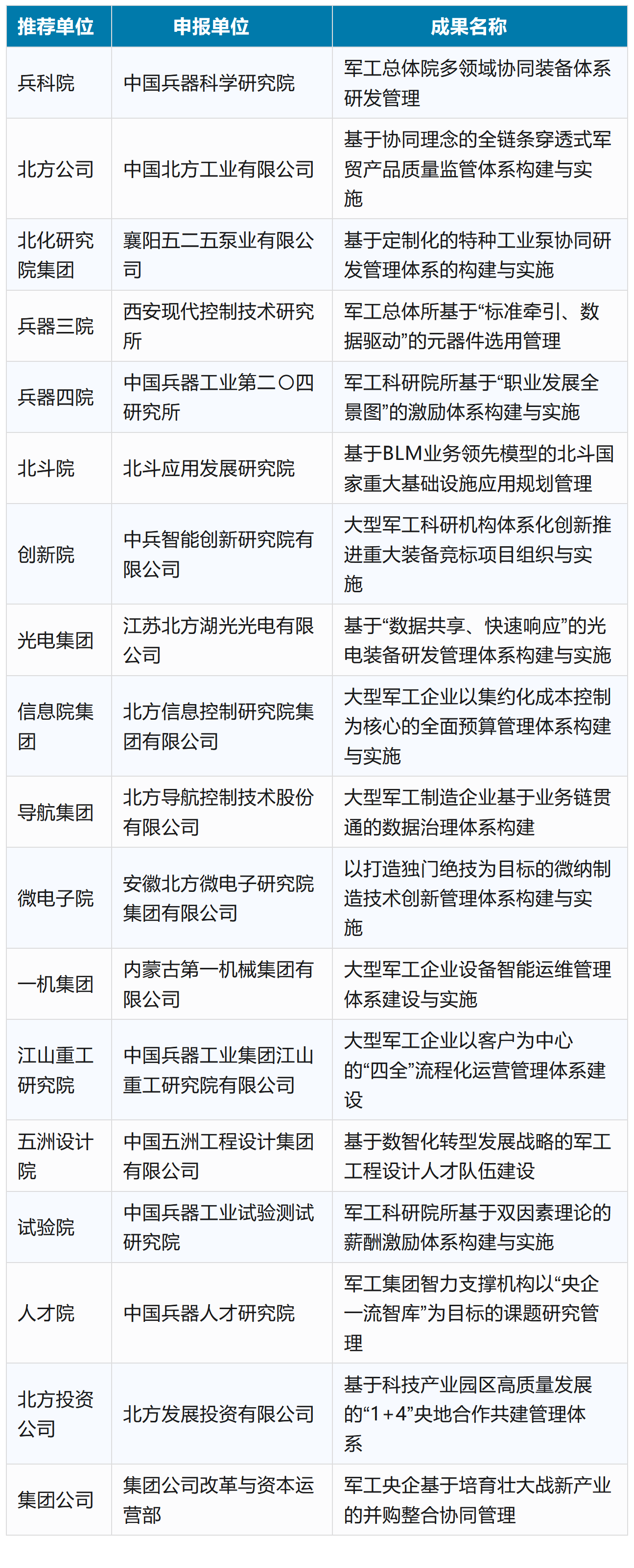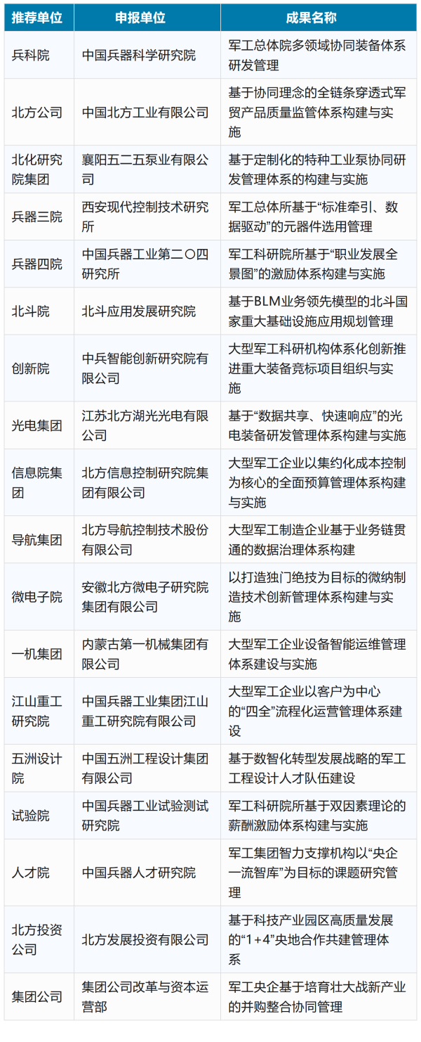 兵器工業集團2025年度管理創新成果獲獎名單發布